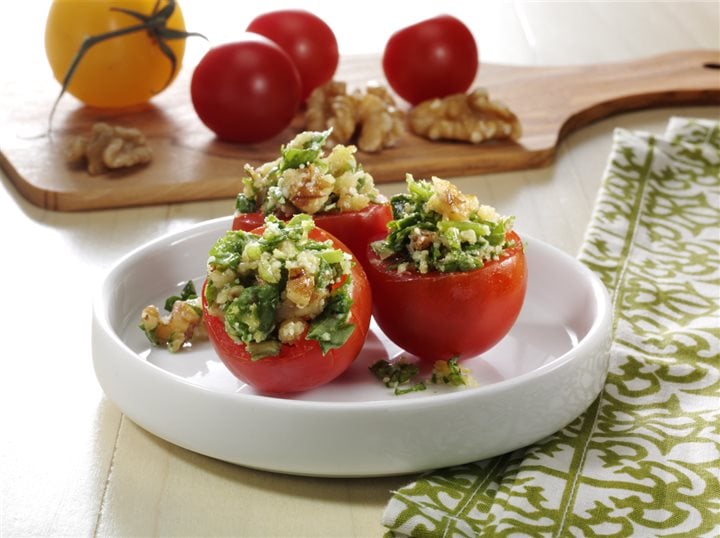 Walnut stuffed cherry tomato halves