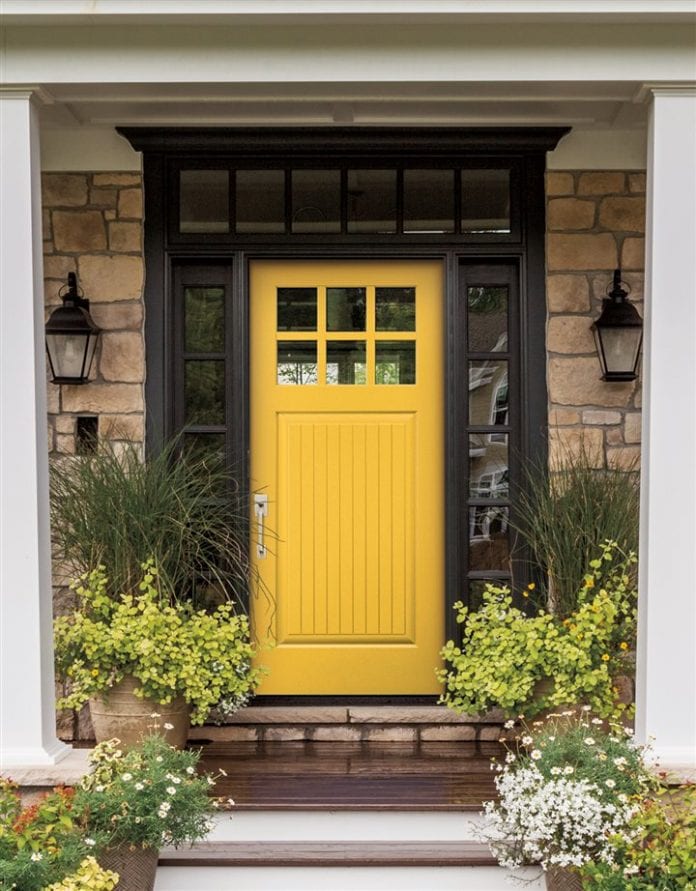 Refresh your existing front door with new hardware. New hardware can be a quick update and add beauty to the entrance to your home’s exterior design. Hardware is available in a variety of finishes including satin nickels as well as unique designs including modern and traditional. Look for inspiration at this Baldwin Reserve board on Pinterest.