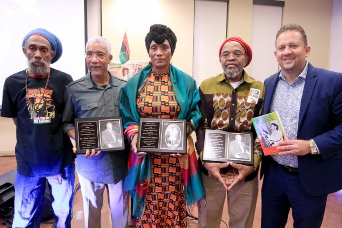 The evening’s highlight was the presentation of Marcus Garvey Community Service Awards to Lauderhill dentist Dr. Milton Tomlinson and Washington DC-based social activists Karl and Valerie Phillpotts of the Shashamane Community Settlement Development Foundation.