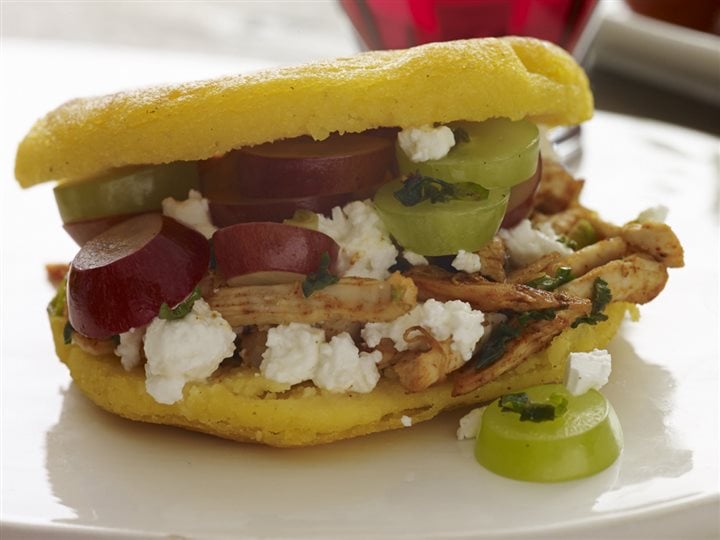 Arepas are satisfying, simple to make, and fun to eat. Best of all, they inspire creativity – arepas can be stuffed with any type of filling. Add even more global flair to arepas’ South American roots by incorporating a bit of Greek flavor with shredded chicken, smoked paprika, feta cheese and crunchy grapes. It’s a deliciously global combo.