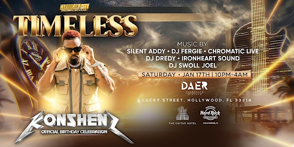 South Florida’s party scene is about to ignite yet again as Caribbean City returns with an unforgettable night of music, culture, and island energy. This staging, titled “TIMELESS,” is a special edition of Caribbean City and the celebration of global dancehall superstar Konshens’ official birthday, but as the artist himself teased in his Instagram announcement, “This Saturday! It’s not just about me… It’s about us.”