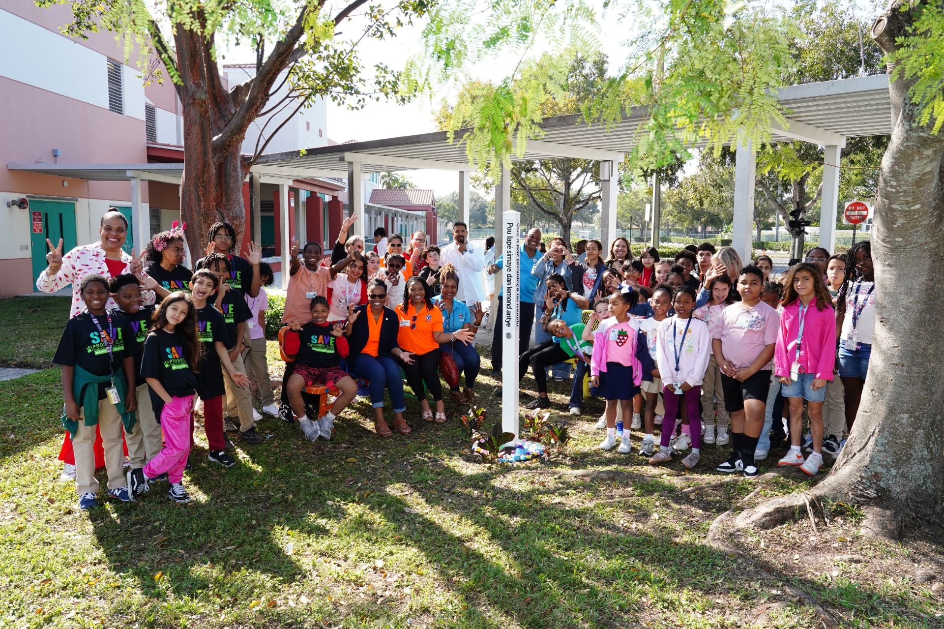 Miramar Commissioner Avril Cherasard and the Kiwanis Club of East Pines-Miramar have dedicated two Buddy Benches at Coral Cove Academy of the Arts, marking a joint effort to promote kindness and inclusion on campus.