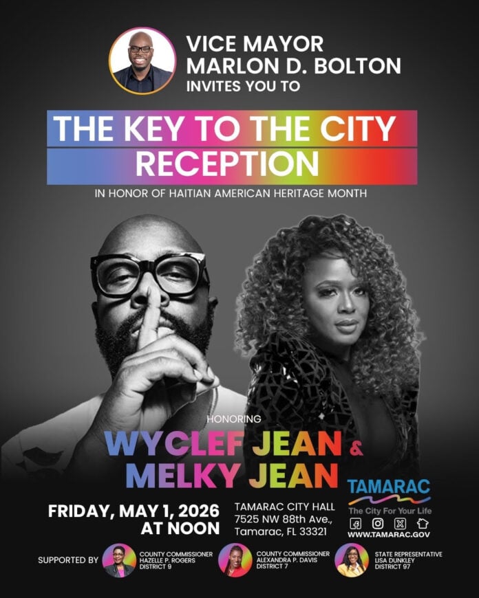 The City of Tamarac is set to honor two globally recognised Haitian-born figures, Wyclef Jean and Melky Jean, during a special Key to the City reception on Friday, May 1, 2026.