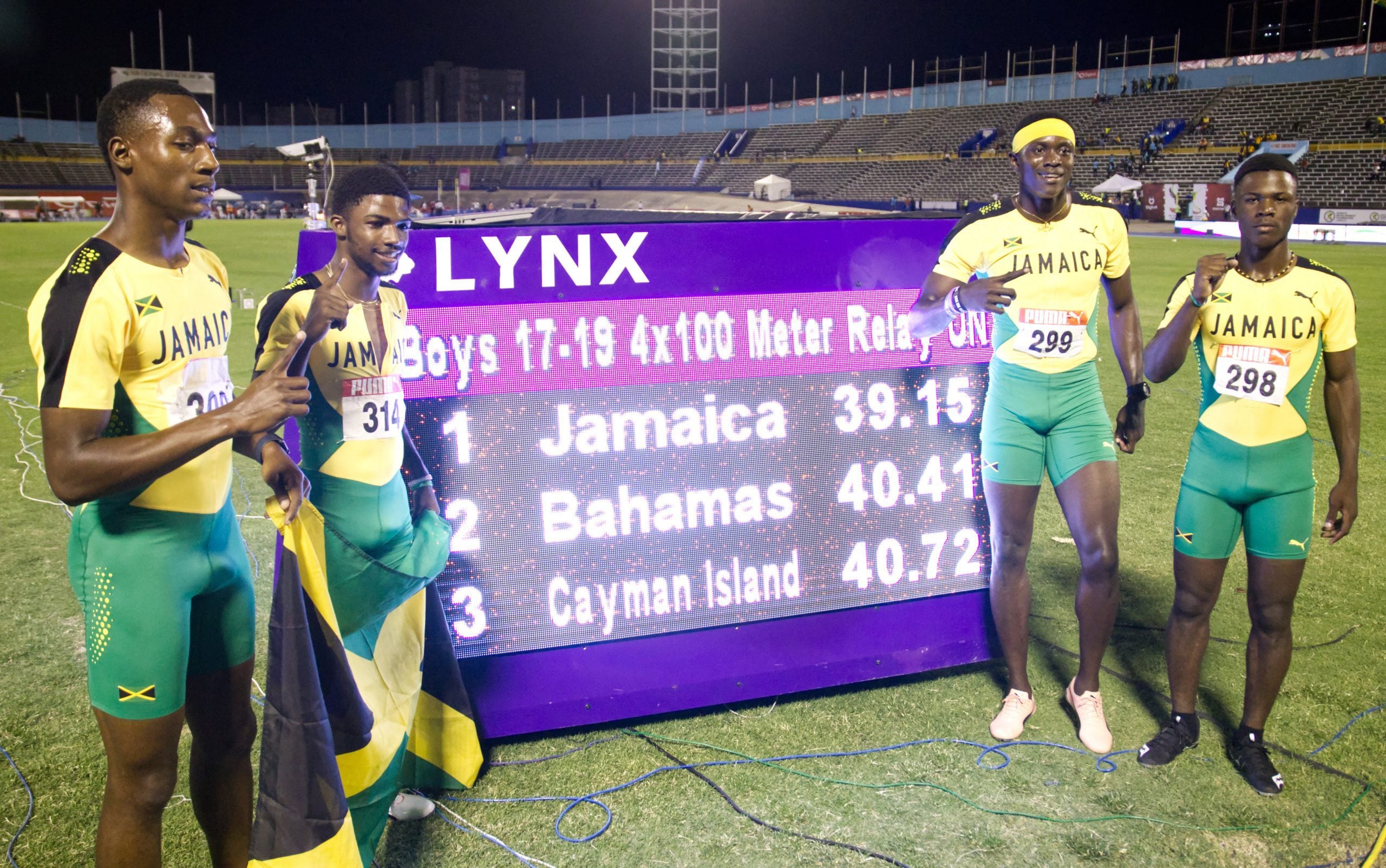 The Jamaicans, current 4x100m Under-20 World Championships gold medalists from Nairobi, Kenya, when they ran 42.94 seconds last summer, erased the previous World Under-20 World Record of 43.27 seconds, as well as the Carifta Games mark of 44.03 seconds, which was set by Jamaica in 2011.